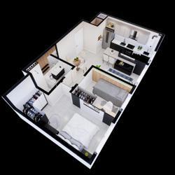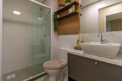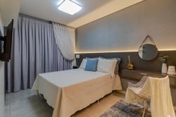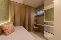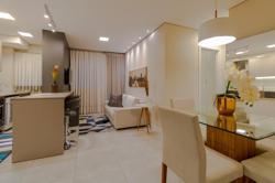 Apartamentos de 2 dormitórios com móveis sob medida (somente madeira, não acompanha os demais itens da foto) e garagem para um carro.